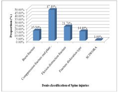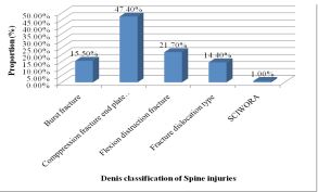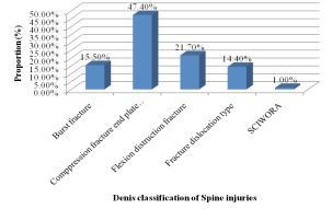 For two years of this study, only 2263 patients with musculoskeletal injuries were admitted in orthopaedic department. Of these only 140 (6.19%) had spine injuries, and out of these only 97 (69.29%) had criteria’s to be included in this study.