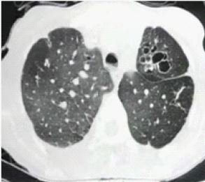 diagnosis of bronchiectasis is frequently delayed for months or years, often with symptoms misdiagnosed as bronchitis, asthma, or recurrent pneumonia. Almost any cause of significant bronchial injury can lead to bronchiectasis [1,2]. According to Cole’s generally accepted “vicious cycle”, hypothesis airway damage and infection play reinforcing roles in the development of bronchiectasis. A primary insult to the airways leads to the damage of ciliated epithelium and mucosal glands, impairing the mucociliary clearance system and thus increasing the frequency and also the severity of pulmonary infections and perpetuating the vicious cycle [3]. Triple A syndrome is a rare autosomal recessive inherited condition characterized by three specific features: Addison disease, achalasia and Alacrima (a reduced or absent ability to secrete tears). These three cardinal signs may be associated with autonomic dysfunction and other neurological features, leading ‘’triple A’’ to ‘’quaternary A’’ denomination, respectively [4]. Neurological manifestations as dysautonomia causes dyshidrosis and digestive, sexual, circulatory and urinary dysfunction; pyramidal syndrome and peripheral neuropathy lead to walking difficulties and rarely to sensory deficit; and bulbar and facial deficiencies are responsible for velopharyngeal incompetence, tongue amyotrophy or paresis, orbicularis oris dysfunction and oropharyngeal dysphagia. Specific autonomic disturbances described in this syndrome include poor heart rate variability, abnormal pupillary reflexes, and orthostatic hypotension. Affected individuals may also have intellectual disability, developmental delay, a small head size, muscle weakness, movement problems, speech problems, peripheral neuropathy, and optic atrophy [5]. Achalasia is typically managed with surgical correction. Individuals may be monitored for pulmonary complications (due to reflux and aspiration). Usually recommended are surgical intervention after gastric acid reduction therapy in individuals with reflux. Pneumatic dilatation (also called balloon dilation) may be partially improve the symptoms in individuals with achalasia. Aspiration of oral contents can be particularly damaging to bronchi. Gastro esophageal reflux disease with gastric aspiration contribute as well [6]. The most plausible pathophysiology can be aspiration of gastric contents causing direct damage to large and small airways and thus leads to airway inflammation. Common causes of repeated aspiration include large hiatal hernias predisposing patients to gastro esophageal reflux, diseases resulting in a patulous esophagus, and esophageal motility disorders. In chronic aspiration, bilateral peripheral lower lung zone (dependent)-predominant bronchiectasis can be seen. When accompanied by acute or recent aspiration, centrilobular ground glass and tree-in-bud nodules are common in the bronchocentric areas of the lower lobes and the dependent upper lobes. Bronchial wall thickening, mucous impaction, aspirated material in the trachea or bronchi, mosaic attenuation, and the presence of achalasia cardia , hiatal hernia are other clues to the diagnosis [7,8].
